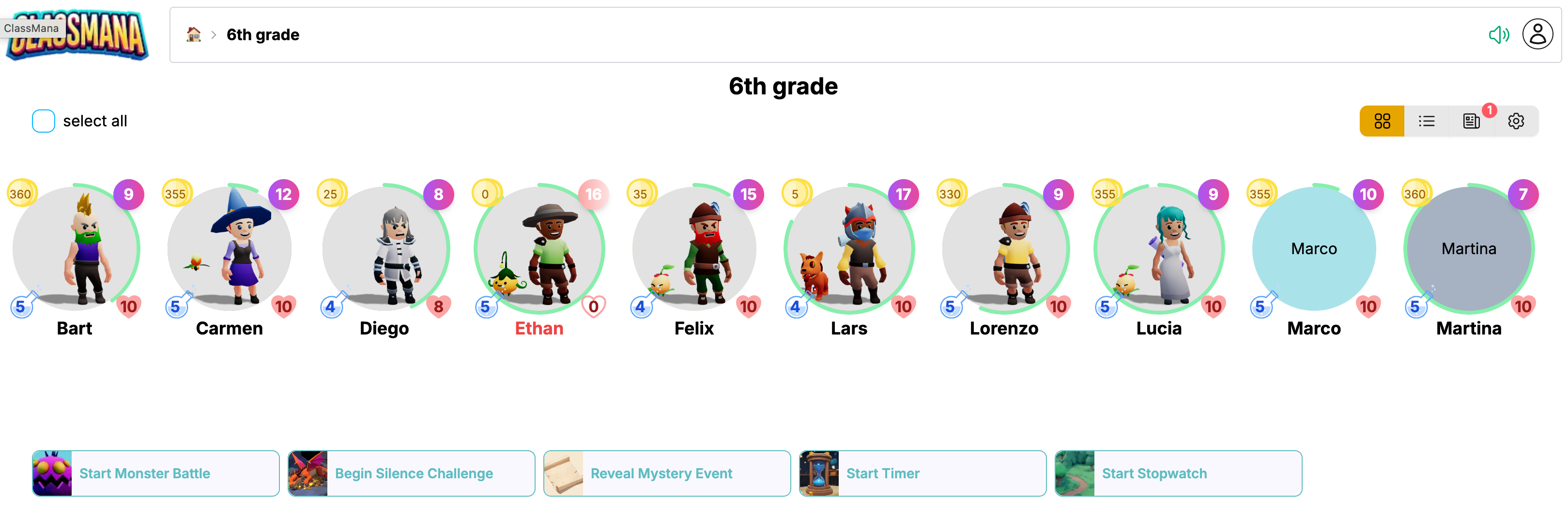 Questa versione include tutte le funzionalità sottostanti PIÙ la capacità di premiare gli studenti con esperienza, mana e oro, o detrarre punti salute.